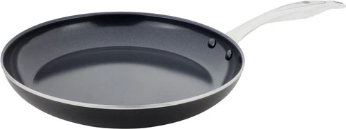 De GreenPan Brussels Keramische koekenpan 28 cm heeft een flinke diameter en is hiermee vooral geschikt als je kookt voor een groot huishouden. De bereidingen die je in deze pan maakt zijn extra gezond, want dankzij de antiaanbaklaag heb je niet veel boter of olie nodig. Deze pan is gemaakt van aluminium, een relatief licht materiaal. De PFAS-vrije keramische coating op de bodem is duurzaam en vervaardigd uit onschadelijke stoffen. De pan is geschikt voor alle warmtebronnen en mag ook in de oven. Let wel op: het handvat van rvs wordt warm tijdens het koken. Wanneer je klaar bent heb je geen omkijken naar de afwas, deze pan is namelijk vaatwasmachinebestendig.