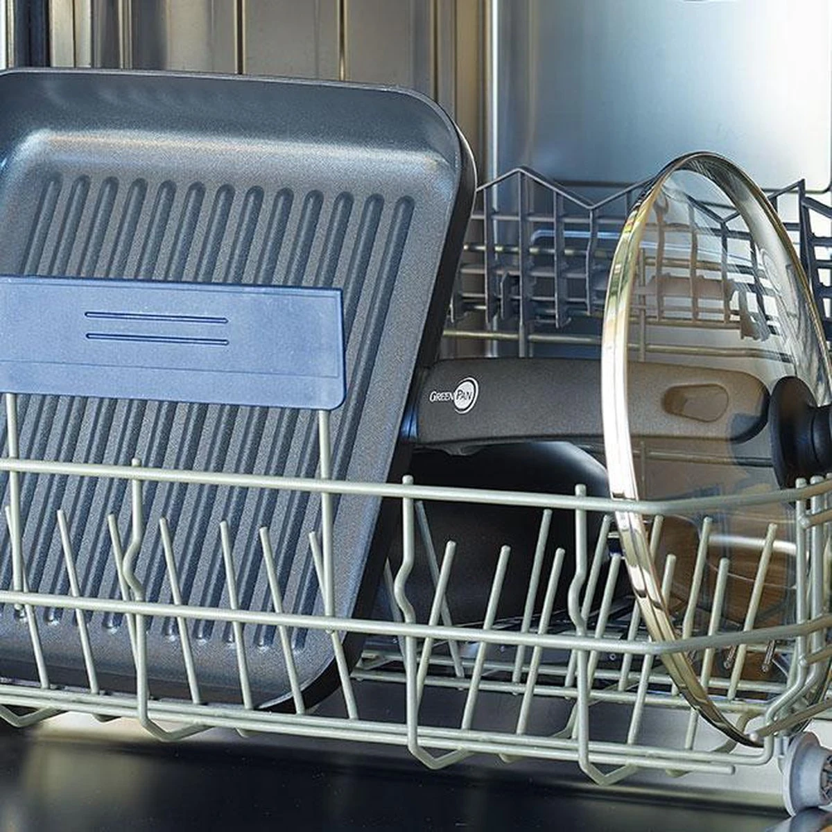 ❕ De grillpan mag in de vaatwasser, maar afwassen met de hand is aanbevolen voor een optimaal behoud van de keramische antikleeflaag.