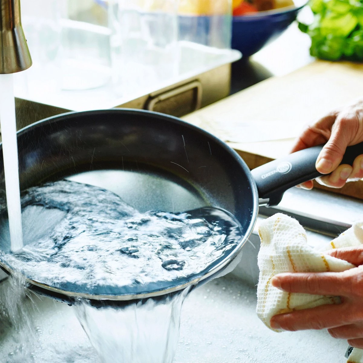 GreenPan is het merk voor iedereen die écht gezond wil koken! Alle potten en pannen hebben een gezonde keramische Thermolon™ antikleeflaag. Die is gemaakt met natuurlijke grondstoffen zoals zand. GreenPan gaat echter nog een stapje verder en gebruikt géén PFAS. Iets wat de meeste merken van antikleefpannen wél nog steeds doen. Met de keramische antikleeflaag van GreenPan ben je dus zeker dat er geen toxische stoffen kunnen vrijkomen, zelfs als je graag kookt op hoge temperaturen.