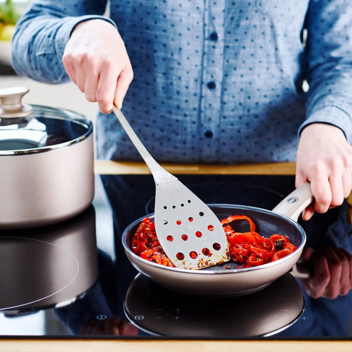 GreenPan is het merk voor iedereen die écht gezond wil koken! Alle potten en pannen hebben een gezonde keramische Thermolon™ antikleeflaag. Die is gemaakt met natuurlijke grondstoffen zoals zand. GreenPan gaat echter nog een stapje verder en gebruikt géén PFAS. Iets wat de meeste merken van antikleefpannen wél nog steeds doen. Met de keramische antikleeflaag van GreenPan ben je dus zeker dat er geen toxische stoffen kunnen vrijkomen, zelfs als je graag kookt op hoge temperaturen.